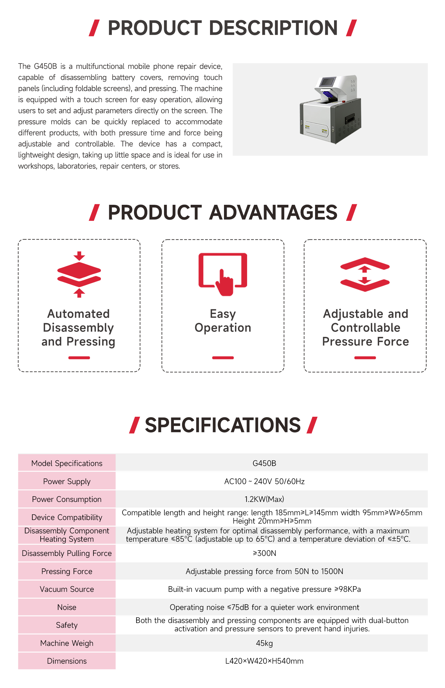 G450B network mobile phone automatic disassembly and pressing equipment